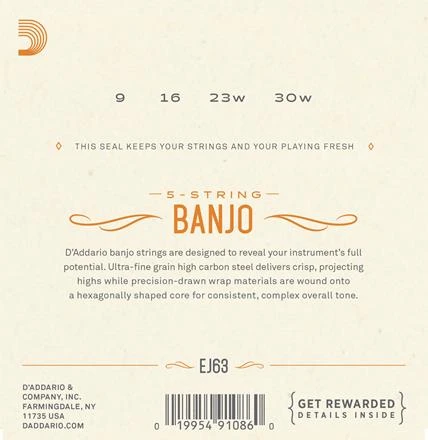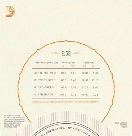 EJ63, D’Addario’s universally appealing tenor banjo set, is optimally gauged for C-G-D-A tuning on 4-string banjo. Loopend construction for universal fit.