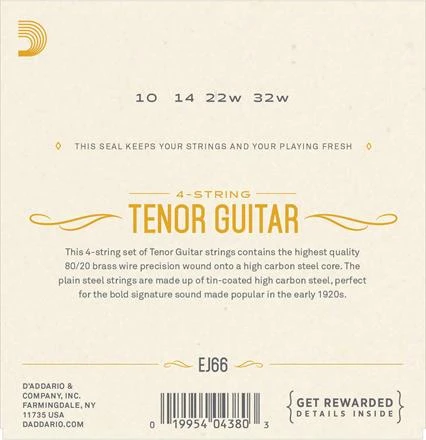 EJ66 Tenor Guitar strings are made from Plain Steel and 80/20 Bronze wound strings which provide bright, projecting acoustic tone.