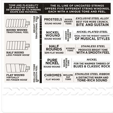 Round wound with nickelplated steel for distinctive bright tone Environmentally friendly, corrosion resistant packaging for strings that are always fresh Made in the U.S.A. for the highest quality and performance String Gauges: Plain Steel .010, .013, .017, Nickel Wound .026, .036, .046,
