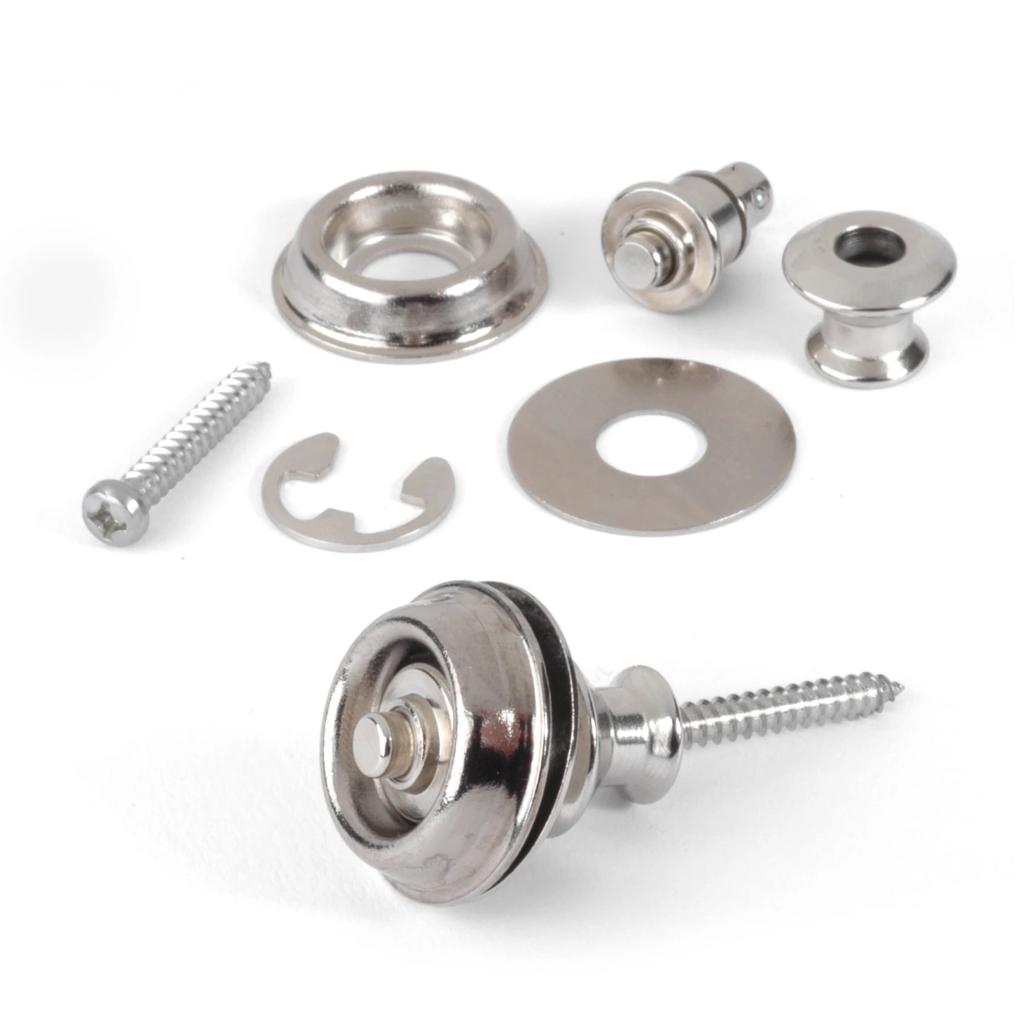 A case-hardened system for safe, secure strap attachment. Features a 4-ball lock and recessed plunger. Set of 2.