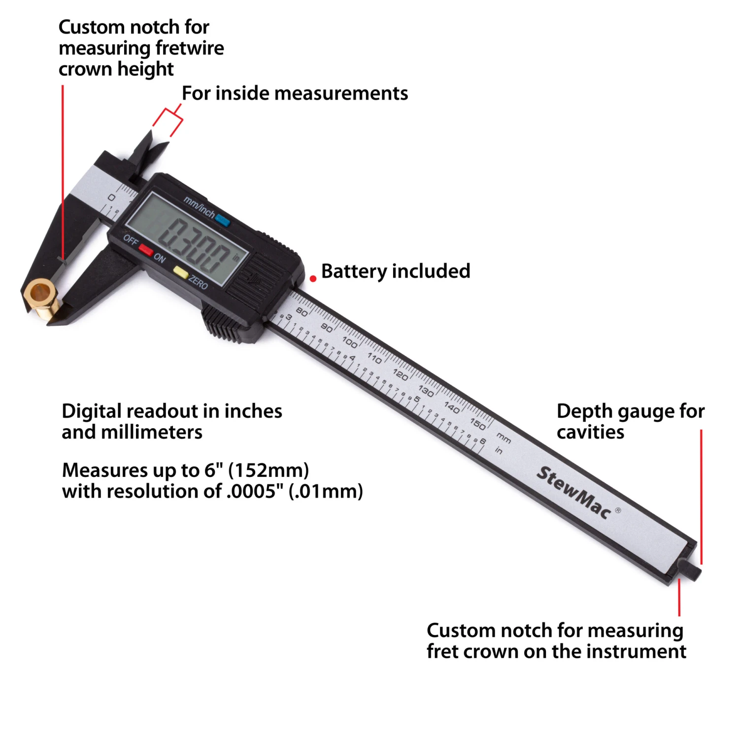For extreme precision, we rely on our original Luthier’s Digital Caliper. They’re made from stainless steel with luthier-designed features for a lifetime of use in a busy pro shop.