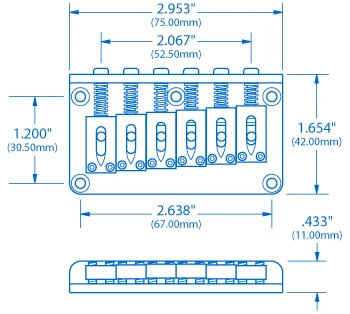 Saddles and baseplate are brass. Saddle intonation is individually adjustable. Mounting screws included.
