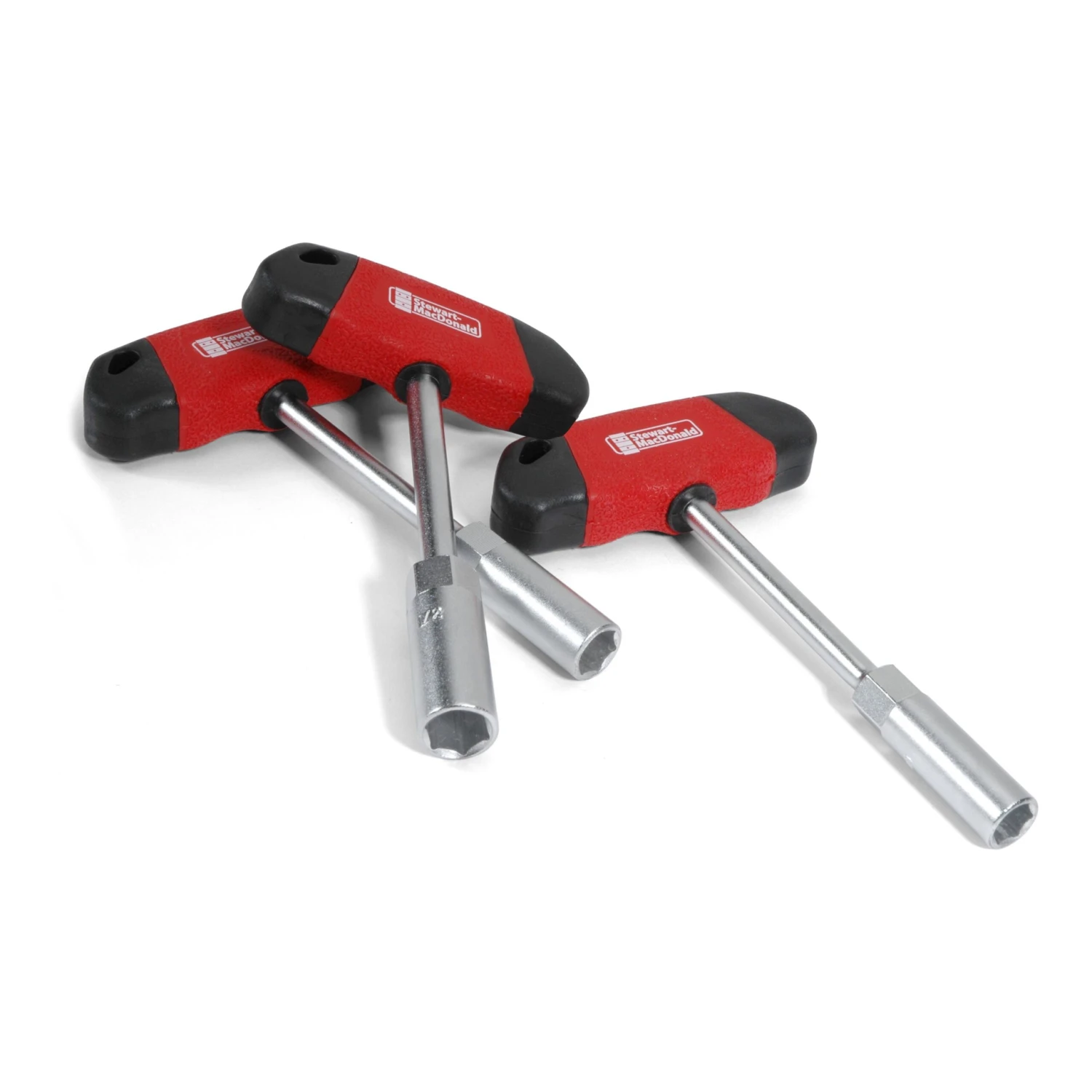 These sturdy steel deep-socket hex drivers are the right size for common guitar repair jobs. The large comfortable T-handles give you plenty of grip.