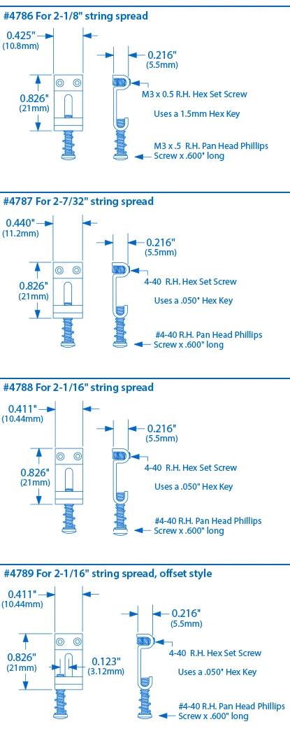 For offset type saddles on US-made Standard Strat®, Strat Plus, and Strat Elite bridges.