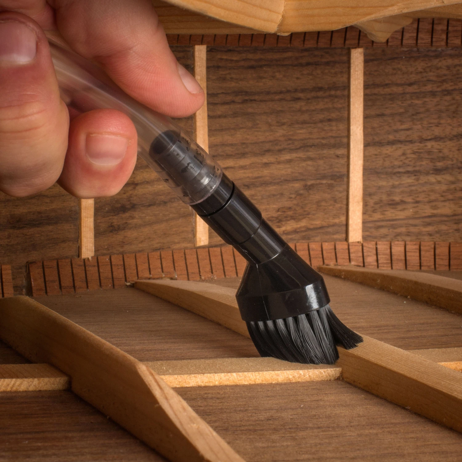 Converts any vacuum into a powerful micro-vac! Clear the dust from electronics cavities. For acoustic guitar repair, thoroughly clean the parts before applying glue.