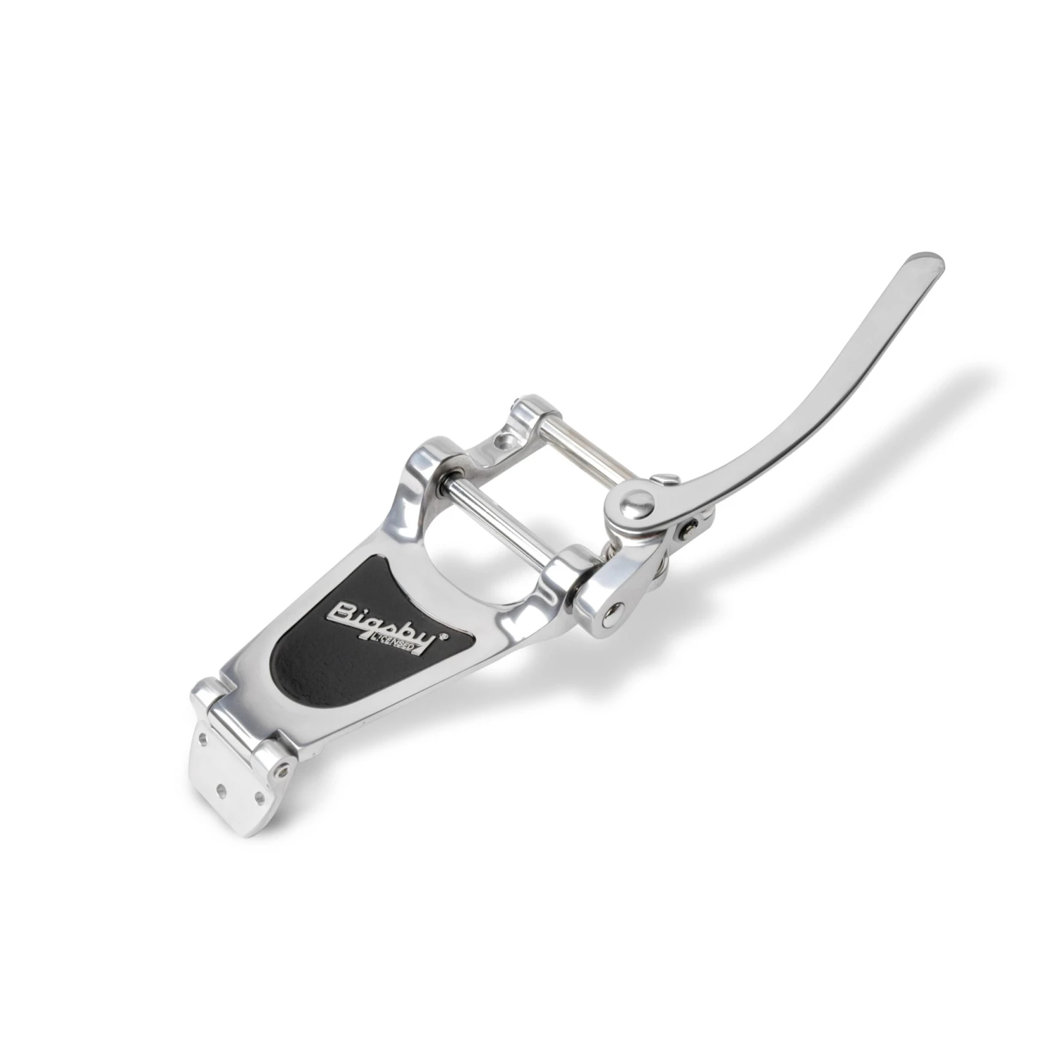 Lower price and smooth action! Licensed by Bigsby, here’s a money-saving imported die-cast aluminum vibrato for thin archtops, or solidbodies such as the Les Paul.®