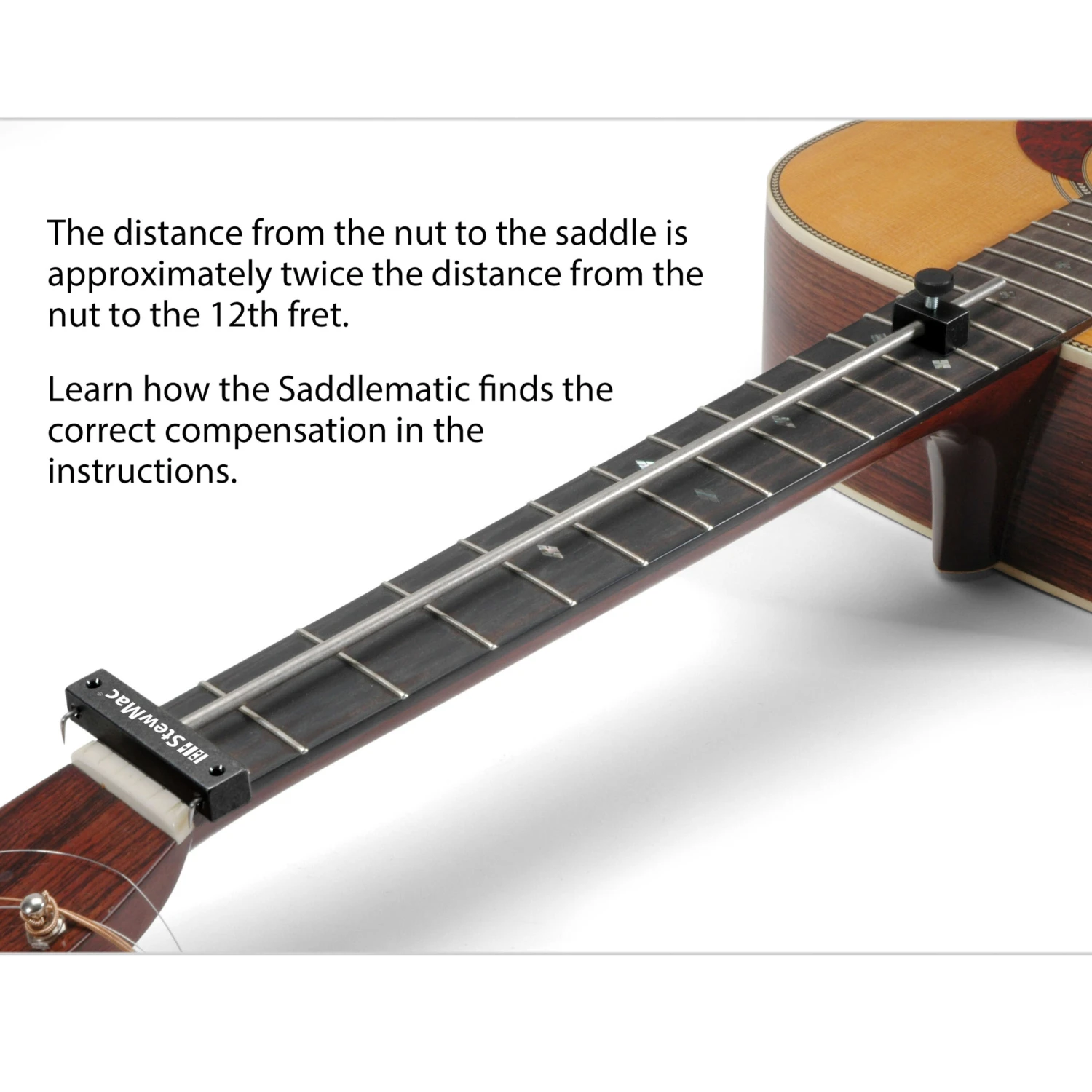• Quick and accurate way to find the correct location for a bridge saddle