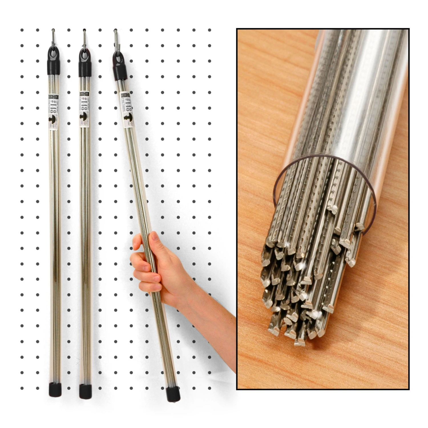 Our bulk fretwire is supplied in convenient clear storage tubes, to keep your wire organized and your workbench uncluttered. You’ll save 50% or more when you order fretwire by the pound.