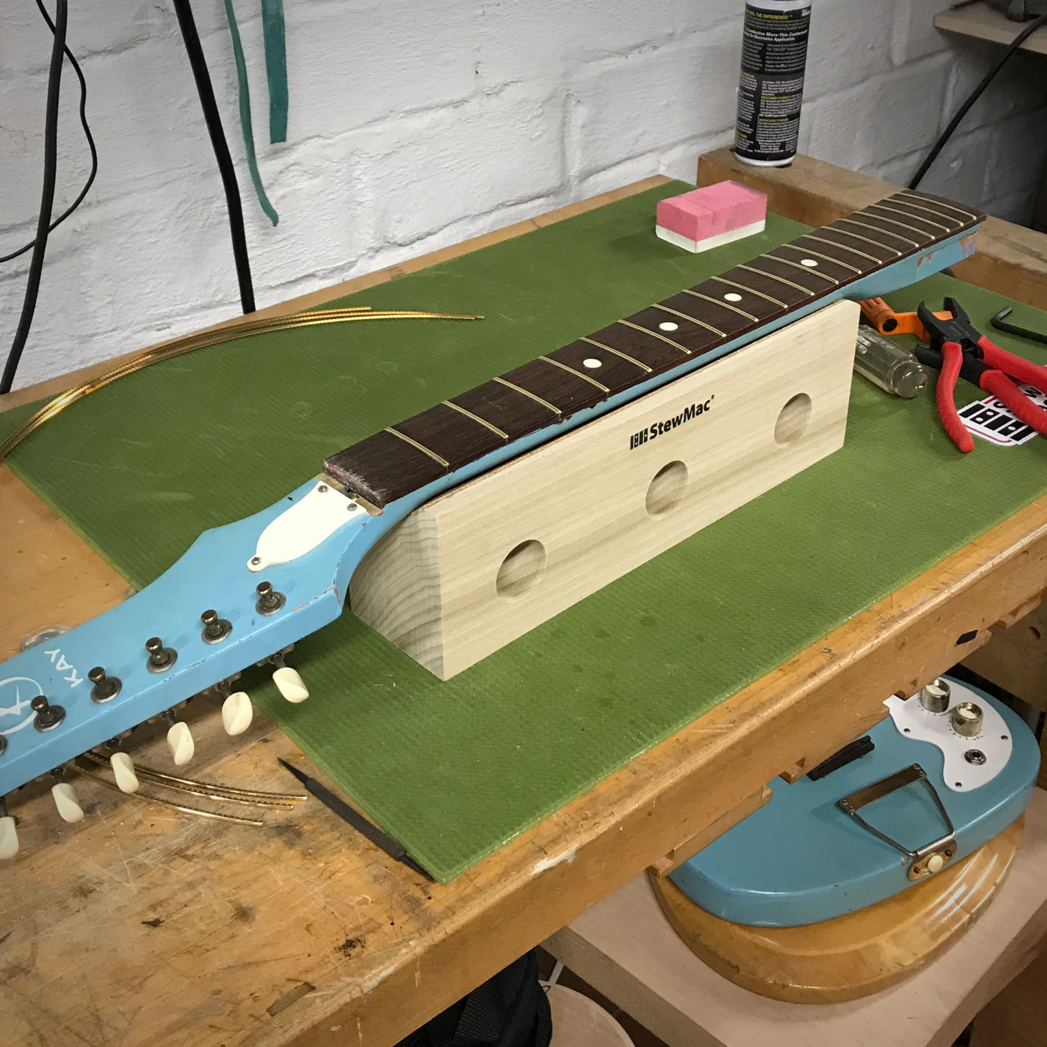“No more stacking my old caul on books to get the clearance I need to fret bolt-on necks!”
